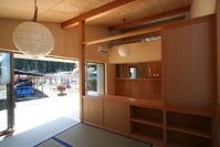 Pic05 畳の間より南庭を望む リビングとの仕切りは松材練り付