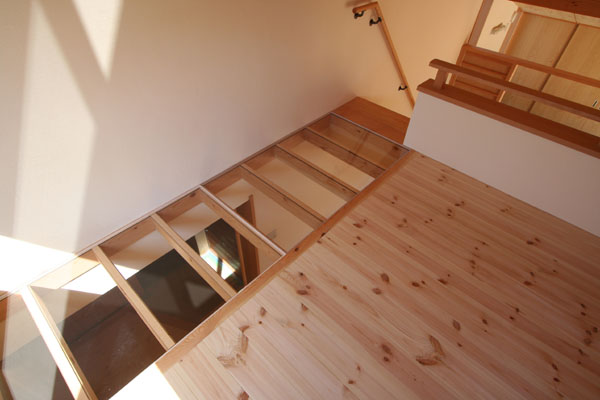 Pic10 2階床に埋め込まれたアクリル板は玄関ホールへ光を落とす。