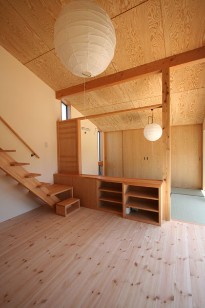 内装は松材多用し、日に焼けた数年後、田舎住宅のように濃く深い色がでることを狙っています。