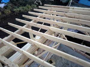 構造的な安定性を考え垂木&小屋梁にアゴを入れて屋根面剛性を確保しています。