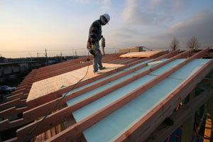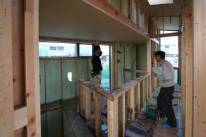 断熱はスタイロフォームで構造材はKD材にて施工しています。